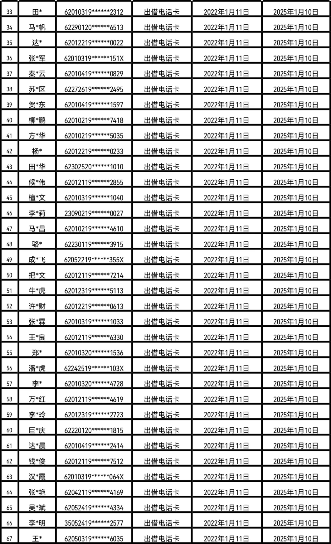 甘肃公开曝光第三批涉嫌电信网络诈骗电话用户黑名单