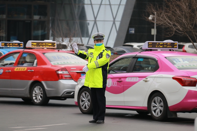 交警为乘客送福。