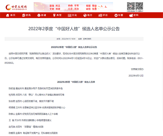 点赞!天水支队1人荣登第二季度“甘肃好人”榜
