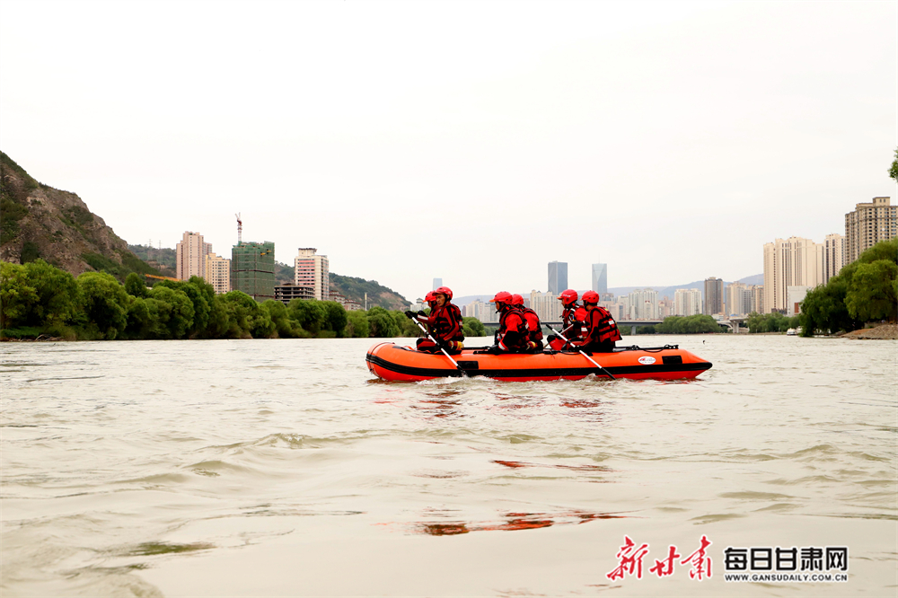 兰州消防特勤大队开展抗洪抢险救援实战演练