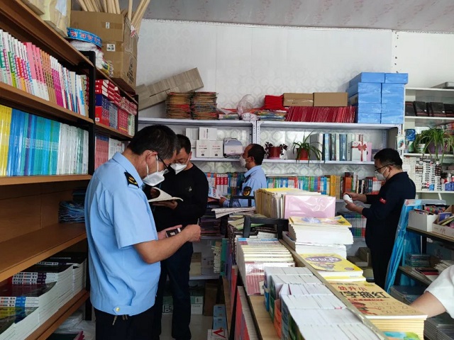 东乡县委宣传部及县文化旅游部门执法人员认真检查了东乡县文化市场经营单位进出人员登记、体温测量、佩戴口罩、消杀记录等疫情防控措施落实情况,对县城的书店、打字复印店等开展专项检查,重点查处销售非法盗版少儿读物和教材教辅等违规违法行为。特别对中小学周边出版物经营场所进行重点清查,对店内所有出版物逐一检查,并要求经营者出具相关进货凭证。
