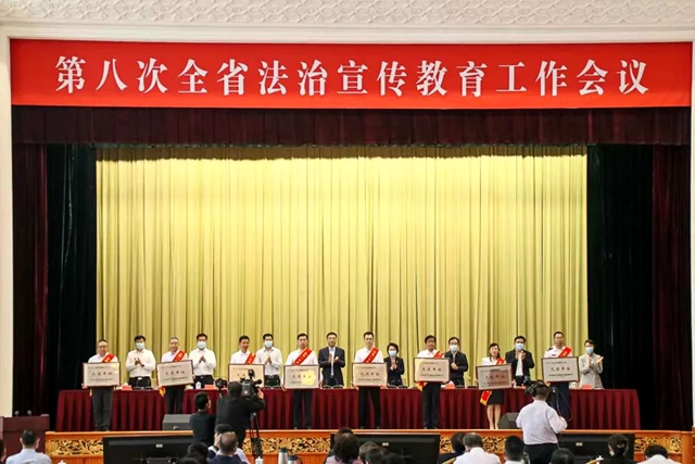 【编者按】日前,第八次全省法治宣传教育工作会议在兰州召开,会议通报了全省“七五”普法工作情况,表彰了获得全国和全省“七五”普法先进集体和个人,对“八五”普法工作进行了全面安排部署。省文化和旅游厅在会上提交了书面交流发言材料,省文化和旅游厅政策法规处作为全国“七五”普法工作先进单位上台领奖。