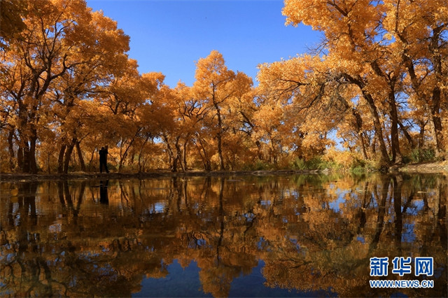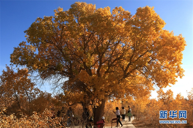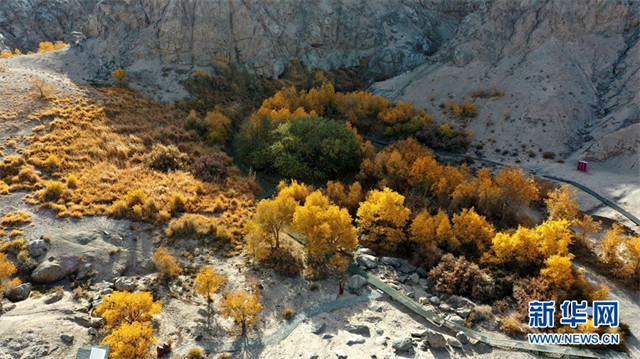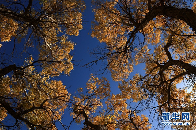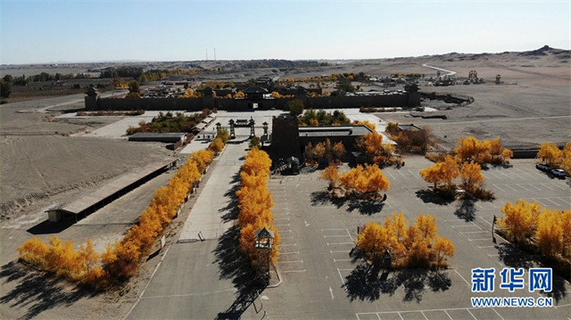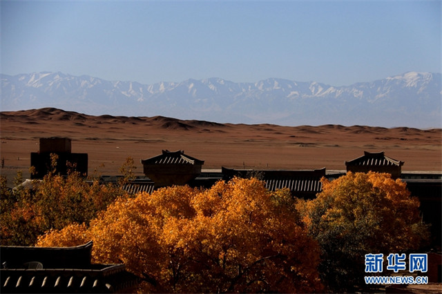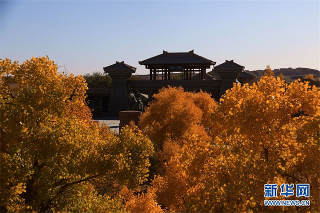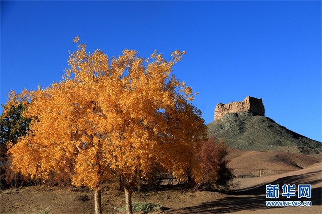 深秋时节,甘肃省敦煌市世界文化遗产悬泉置遗址、莫高镇、黄渠镇、阳关景区等地的胡杨层林尽染,景色迷人,宛如画作,美不胜收。(新华网发 张晓亮摄)