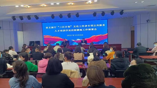 强化“三个注重”,落实专项人才培养。一是注重按需施训。每年对基层急需人才情况调研摸底,针对不同专业人才的需求,科学制定培养计划,选定培训教学机构,协调跟班学习单位,促使培养工作有序运行。二是注重方式创新。多措并举,强化培养实效,每期培养班分专业技能培训和挂职跟班学习两个阶段,依托中央文化和旅游管理干部学院、省内外高校和省直文旅单位,分批对不同专业的人才进行技能培养,做到按需施训、对口培养,由过去“粗放灌输”变为“精准施策”。三是注重实践历练。实行以师带徒教学、成果展示展演、结业技能考核等实练方式,组织学员形体、基功训练和技能实战练习、非遗作品展示秀等,创作《“三区”文化工作者之歌》,通过专业技能培训和挂职实践锻炼专项培养,有力提升了基层文化和旅游骨干素质能力及专业水平,为乡村文化振兴提供了人才支撑。