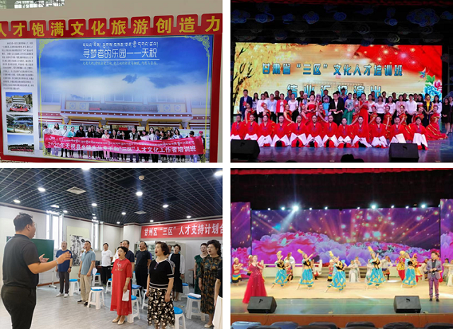 实施“文化人才服务支持艰苦边远地区和基层一线专项”(简称“文化人才专项”),是继中共中央组织部、文化和旅游部等5部门“三区”人才支持计划文化工作者专项任务的延续,是推进乡村人才振兴的有力抓手。甘肃省文化和旅游厅以项目实施为载体,以提升公共文化服务水平为落脚点,结合甘肃省艰苦边远地区和基层受援地的实际需求,统筹规划,创新举措,精准实施,借力发展,累计选派(招募)优秀文化工作者14298名(人次),专项培养1108名专业文化工作者,为受援地开展工作或提供文化服务,极大地丰富了全省基层群众的文化生活,有效提升了全省公共文化服务水平,得到了基层群众的广泛赞许。
