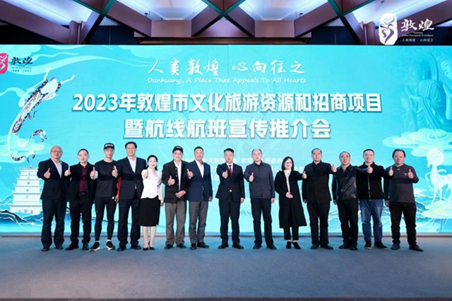 敦煌市在成都市举办2023年敦煌市文化旅游资源和招商项目暨航线航班宣传推介会。敦煌市文旅局供图