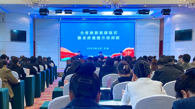 近日,甘肃省文化和旅游厅在天水市举办全省旅游星级饭店服务质量提升培训班,进一步加强行业监管、强化星级标准、提升服务品质。甘肃省各市州文化和旅游部门星级饭店服务质量工作分管领导及科室负责人、第五届省级星评员、全省四星级以上旅游星级饭店负责人参加培训。