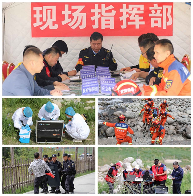 本次演练模拟天祝县发生6.2级地震,导致冰沟河景区内1名游客被困原始森林,1名游客被落石击伤埋压,大量游客滞留,2人受伤。景区内原始森林因地震导致输电线路故障引发森林火灾,根据突发事件处置流程和各相关单位工作职责,共设置了十二个演练科目。武威市、天祝县文旅、公安、消防、应急等10余个部门以及景区安保抢险队伍共300人参加了演练,为全省各地文旅部门和文旅经营单位提供了一次具有实战效果的观摩学习机会。