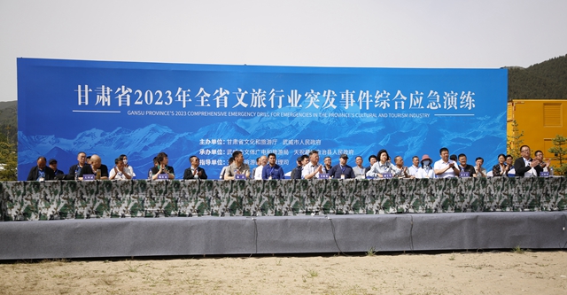 文化和旅游部市场管理司安全和假日处处长、一级调研员陈晨,省文旅厅党组成员、副厅长李殿俊,武威市人民政府副市长柳生坠等观摩指导演练并讲话。
