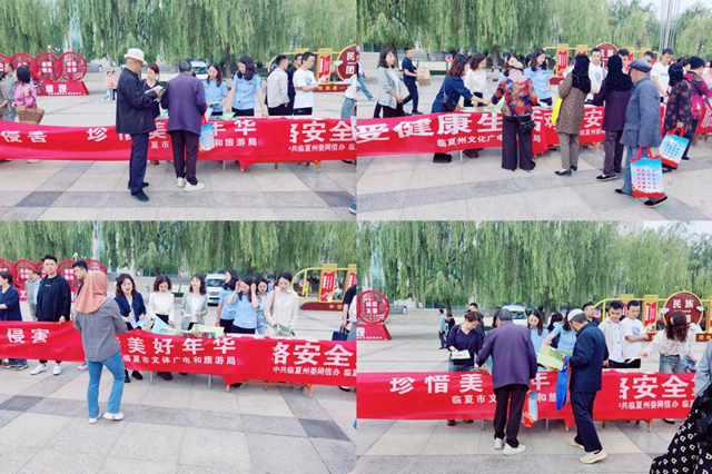 活动中,临夏州文化广电和旅游局开展了以“健康人生 绿色无毒”为主题的禁毒宣传,通过悬挂横幅、摆放展板、提供咨询服务等多种方式对禁毒防毒知识进行了深入宣传。同时,工作人员还向周边群众发放了文旅市场平安建设、安全生产、文明旅游等各项法律法规宣传册,不断增强广大人民群众禁毒、防毒、拒毒的能力和对文旅市场工作的知晓度和配合度,积极倡导健康的生活理念。