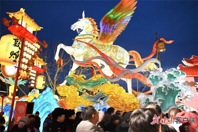 市井烟火里的年味欢歌 腊月二十八一大早,兰州市民王昭山一家便驱车来到武威雷台景区。一踏入景区,串串红灯笼扑面而来,“天马行空”“四象祥瑞”等马年主题灯组流光溢彩,巧妙融合马踏飞燕IP与现代光影技术,新春氛围感瞬间拉满。