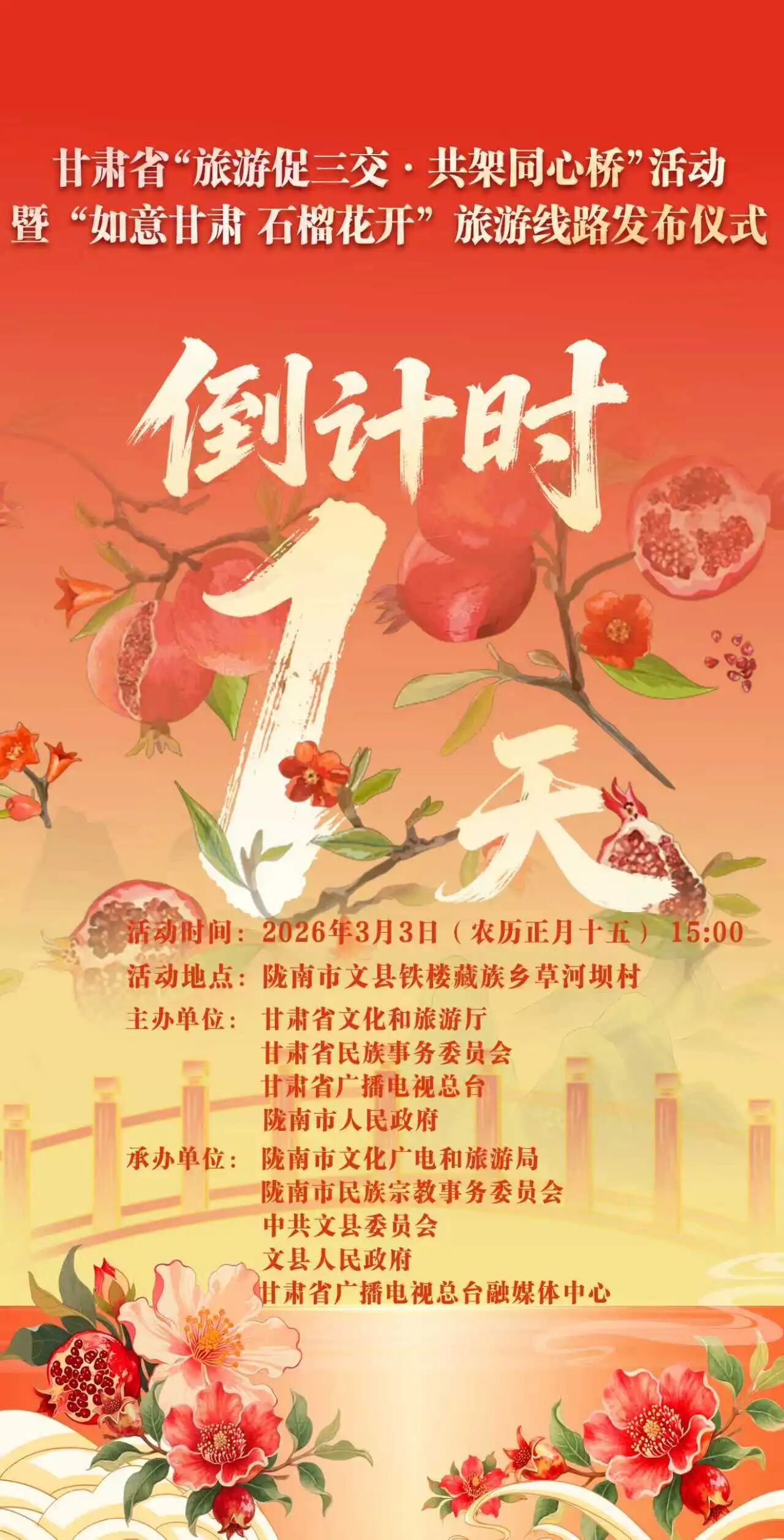 倒计时1天!甘肃省“旅游促三交·共架同心桥”活动暨“如意甘肃·石榴花开”旅游线路发布仪式明日举行