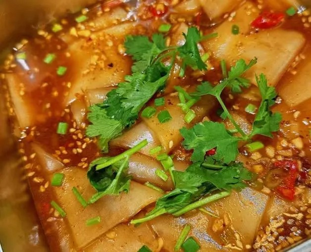 定西宽粉,是这座小城最出圈的美食,也是每个游客必打卡的舌尖美味,如今更是红遍全国火锅店的“明星”食材。选用当地种植的优质马铃薯,经日光晾晒、手工揉捻等传统工序制成,并非洁白色泽,而是半透明的玉色,口感筋道爽滑,吸味性极强。炒宽粉,搭配青椒、蒜苗、肉末,翻炒均匀,酱香浓郁,香辣入味,每一根宽粉都吸饱了汤汁,一口下去,满足感爆棚;凉拌宽粉,淋上陈醋、泼上本地油辣子,撒一把翠绿的香菜,酸与辣在舌尖交织,清爽解腻,是盛夏里的绝佳美味。