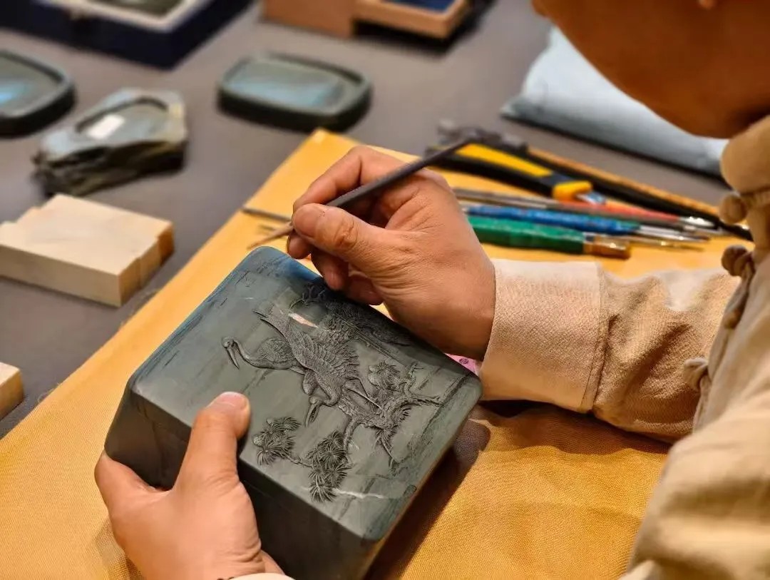 洮砚制作技艺,是临洮最具代表性的非遗技艺之一,被誉为“中国四大名砚”之一,主产地在定西洮河沿岸。洮砚的制作,选料极为考究,只选用洮河中的老坑绿石,质地温润,色泽碧绿,纹理清晰,是砚台中难得的珍品。制作洮砚,需要经过选料、采石、雕刻、打磨等多道复杂工序,每一道工序都需要匠人精心打磨,耗时良久,采石环节尤为艰辛,需在洮河沿岸的悬崖峭壁上开采石料。匠人凭借着精湛的技艺,将石头的纹理与雕刻的图案完美融合,多以陇中山水、民俗风情为题材,花鸟鱼虫、山水人物,每一幅图案都栩栩如生,寓意吉祥。如今,洮砚不仅是文房四宝中的珍品,更是定西文化的象征,吸引着众多文人墨客前来收藏,也让这项古老的技艺在新时代焕发出新的活力。