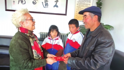 中报网11月25日讯 据兰州晚报报道 63年前,好心同事陈怀新借给蔡雅贞10元钱,帮她渡过难关。这一份恩情让蔡雅贞铭记在心。11月12日,85岁的蔡雅贞委托本报寻找恩人陈怀新。报道刊出48小时内,蔡雅贞得知恩人已经离世。蔡奶奶与陈怀新爷爷的家属商量后,双方决定以两位老人的共同名义,把2000元爱心款捐给我省山区困难儿童。11月24日,本报公益小组和85岁的蔡雅贞奶奶驱车220公里来到永登县武胜驿镇金嘴小学,蔡奶奶亲手把2000元交到了失去父母的邱宗宗、邱静静兄妹手中,并鼓励兄妹俩讲诚信、懂感恩,用行动把这份大爱传递下去。