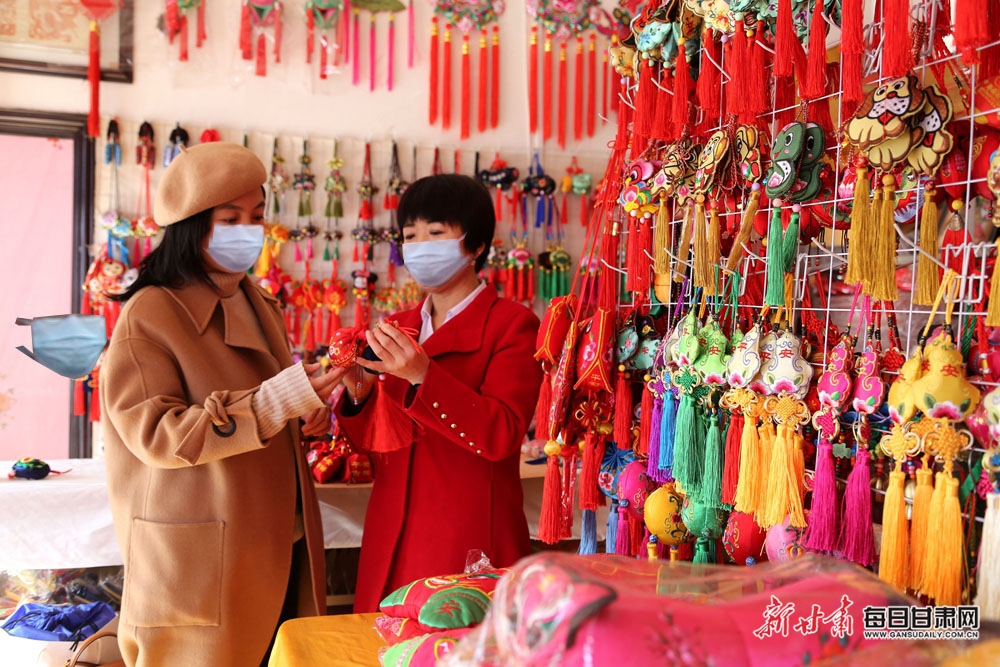 香包是庆阳的传统民俗文化产品,造型丰富、图案精美、淳朴典雅。新冠肺炎疫情发生后,一些非遗传承人纷纷研发防疫香囊,选用优等绸布和丝线手工缝制,配制装饰流苏,内装甘松、山奈、白芷、川芎等七种辛温芳香中草药。这种集实用性与观赏性为一体的中药香囊,具有解郁开窍、醒脑提神、宁心安神、祛风除湿等功效,受到越来越多消费者的喜爱。