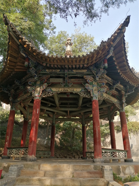 古建筑群与潺潺涧水、晨钟暮鼓、缭绕烟岚、沧桑古树,同聚于喧嚣的古城一隅,营造出了一处清幽雅静、寄情览胜的“人间小洞天”。依托古建筑的儒、道、佛文化同存于园内,和谐共生,可谓是:五泉三教一片天。