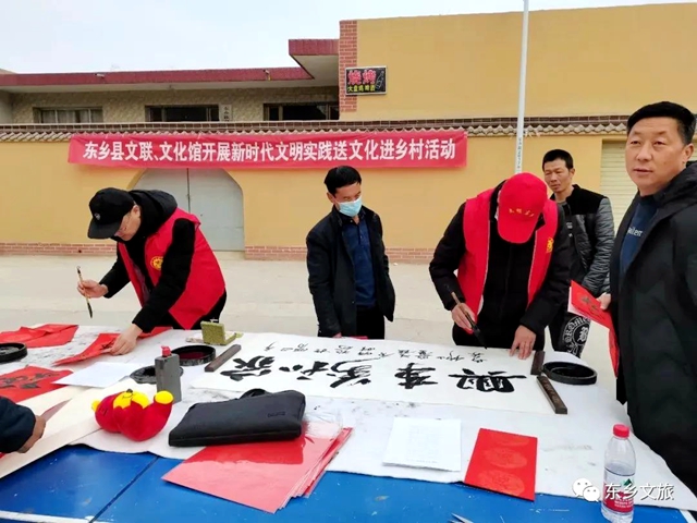临夏州、市文化馆组织10余名书画名家到临夏市陈马村、马家庄、后杨村开展迎新春文化送文化下乡活动,通过书写春联和福字、表演节目等形式,把满满的关怀、浓浓的年味儿和新春的祝福送到群众手中,丰富了百姓的精神文化生活,营造了和谐吉祥的新春氛围。