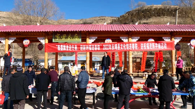 永靖县文旅局组织县文化馆、县书协、美协分赴盐锅峡镇、陈井镇开展永靖县2022年“迎新年·贺新春”送福送春联活动,让广大群众共享文艺发展成果的同时,提升了村民对美好生活的获得感、幸福感,为推进乡村全面振兴提供了强劲的精神动力。