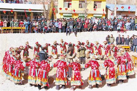 岷县“巴当舞”表演。新甘肃·甘肃日报通讯员 郎佐民永靖王氏打铁花、岷县中寨镇古庄村的巴当舞、文县铁楼乡白马人的“池哥昼”……在众多社火展演中,非遗文化遗产项目也在各地举行。高高跷、铁芯子和永登太平鼓表演更是让人们在惊险、刺激的视觉冲击中过足了瘾。