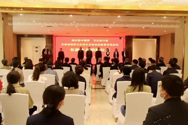 4月26日上午,“我们的中国梦·文化进万家”甘肃省政府文史馆艺术家走进临夏采风活动书画作品捐赠仪式在临夏市举行。