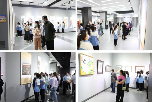 本次书画展共征集到书画作品438幅,展出优秀作品150余幅,书法作品篆、隶、楷、行种类齐全,绘画作品或写实、或会意、或浓墨重彩、或写意挥洒,展示了酒泉市教育系统师生“立德树人”“美育育人”的丰硕成果,彰显了全市教育系统奋发向上、开拓进取的精神风貌,表达了广大师生对党、对祖国、对社会主义的挚爱之情。
