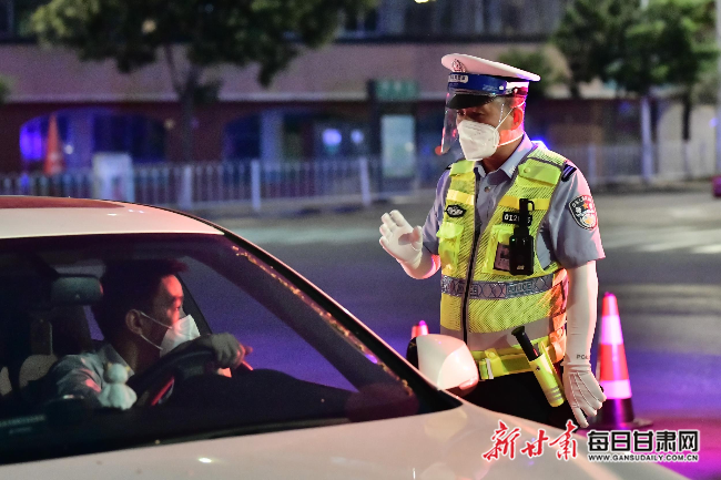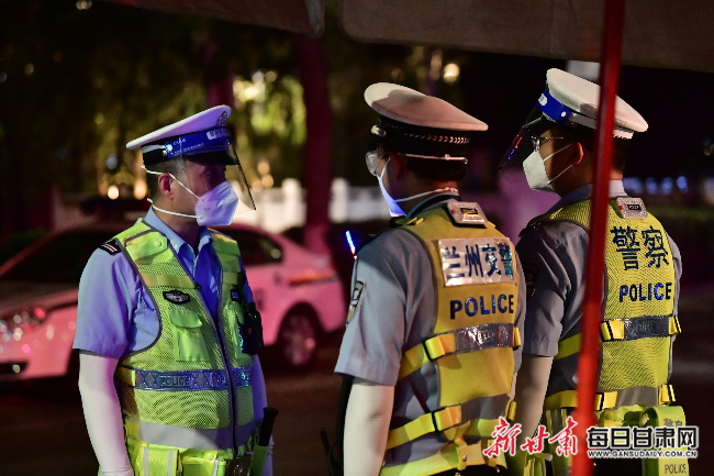 7月25日晚8时45分,兰州市城关区南滨河路中段车辆寥寥无几。在南滨河路白云观,兰州市交警支队城关大队中队长白登红和民警依然坚守在岗位上,排查过往车辆的通行证件。