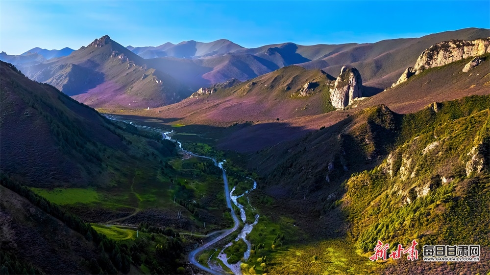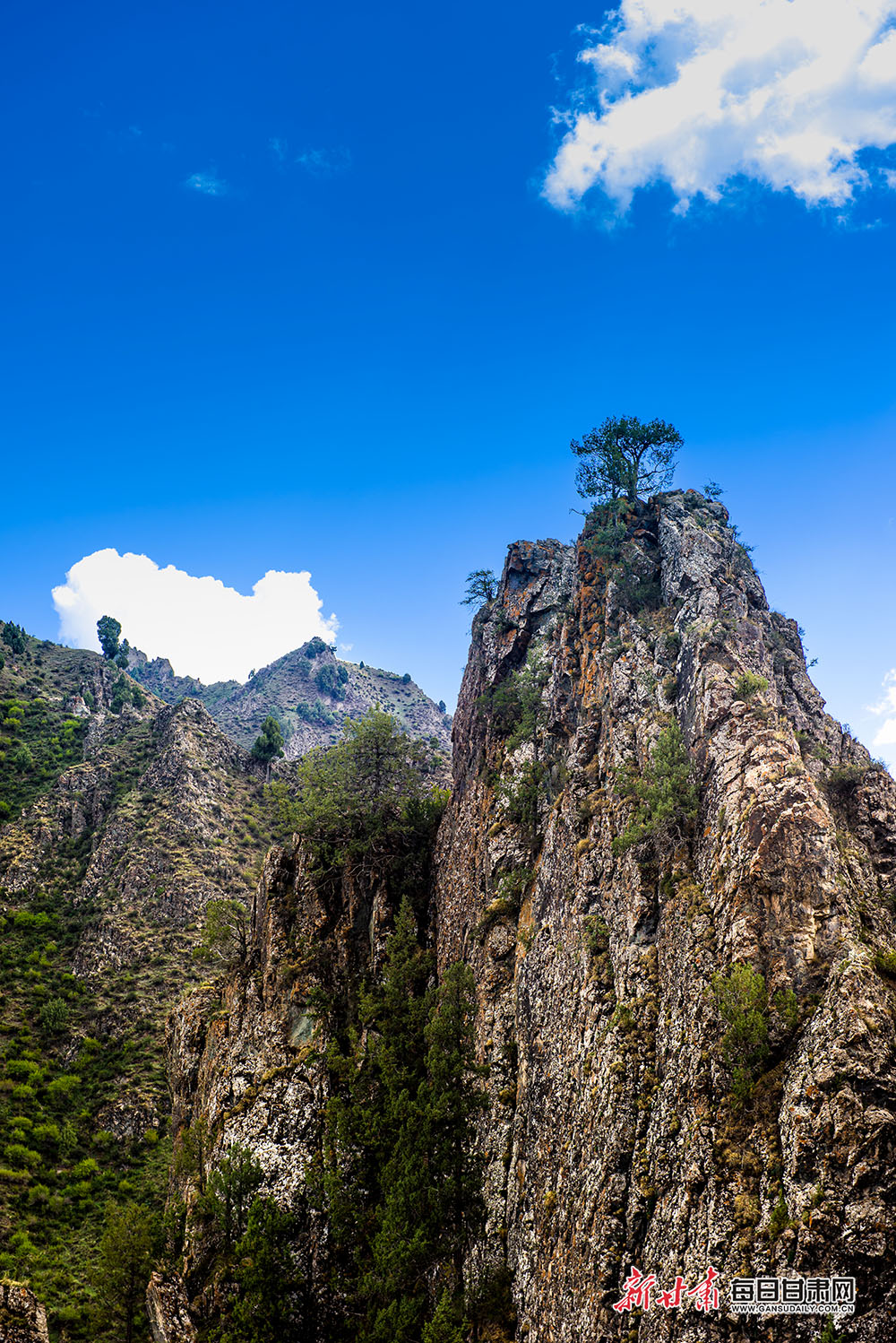 秋日,走进天祝石门镇三峡国家森林公园“药水沟”景区,沟口有碧波荡漾的石门河水库,狭长的峡谷两侧山体有的犹如刀削,有的平如山丘,高低错落,松柏翠和金露梅黄相间其中,一条小河宛如碧带蜿蜒舒展,一幅幅壮美的风景画就在眼前乘风而来,好不惬意。