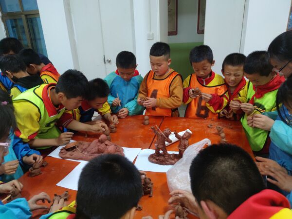 “非遗进校园”活动中,小学生们跟随泥塑传承人学习泥塑制作 张惠莉摄