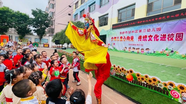 为充分展示非遗保护工作丰硕成果,增强全社会非遗保护传承意识,推动张掖市优秀文化在校园的普及和弘扬,张掖市文化广电和旅游局坚持开展“非遗进校园”培训、展演、展览、赠书等活动,培养了一批喜爱非遗、热爱非遗、掌握非遗制作技能的中小学生,依托校园浸润,非遗的生命力和创新性均得到增强,在社会各界引起积极反响。