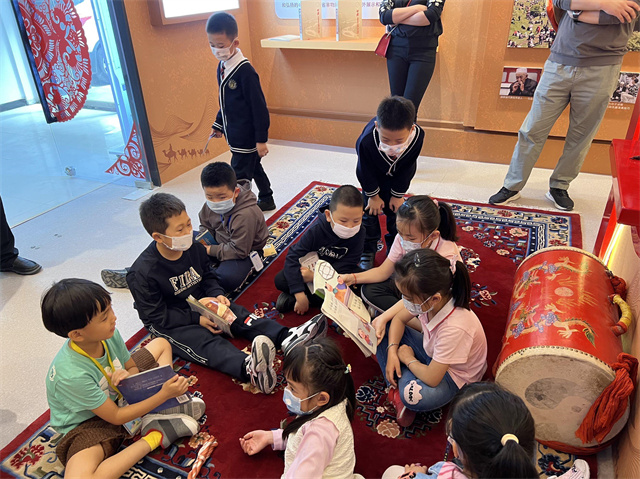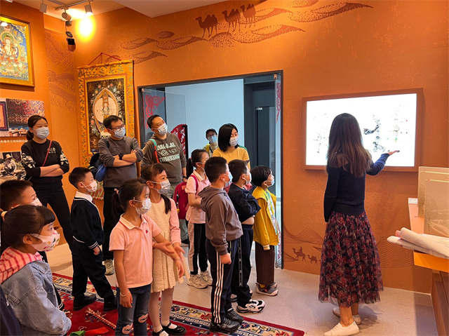 “甘肃非物质文化遗产展厅以固定陈列展为主,主要采用图文和实物相结合的展示方式,辅以数字化技术手段。展示项目涵盖全省14个市州,以甘肃省联合国教科文组织人类非遗代表作名录项目为重点展示项目,对甘肃省最有特色的如兰州牛肉面等国家级和省级非遗代表性项目进行展示,成为甘肃省非遗传播弘扬的窗口……”9月25日下午,甘肃非物质文化遗产展厅迎来了水车园小学雨露班第四组的同学们,在展厅开展了一场别开生面的书友会。