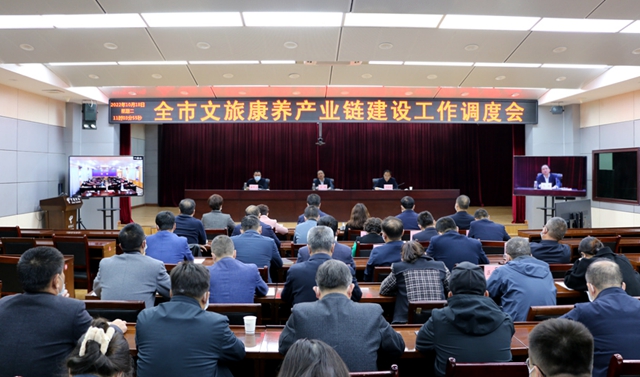 马琦指出,今年以来,各级各有关部门认真落实全市重点产业链链长制要求,积极推进文旅康养产业链建设,取得了一定成效。他提出,要进一步认清发展形势,增强加快发展的紧迫感和责任感,坚持问题导向、目标导向和结果导向,强龙头、补链条、聚集群,努力在项目建设、业态培育、招商引资等方面取得实效。
