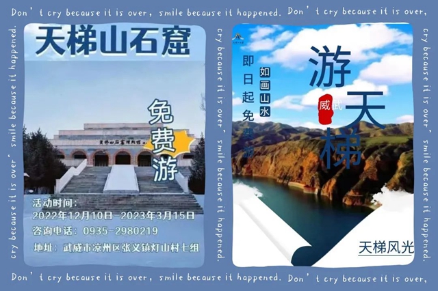 为进一步提振文旅信心,预热文旅市场,推进文旅深度融合发展,扩大“石窟鼻祖”品牌影响力。武威天梯山石窟景区精心打造了“惠聚冬春精彩·相约千年石窟”畅游武威活动。