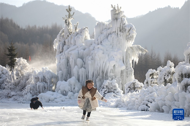 近期,甘肃省定西市渭源县利用渭河发源地的文旅品牌影响力,打造形态多元的冬季冰雪旅游项目,设计冰瀑观赏、玩雪滑冰等项目,丰富游客的游玩体验。目前,渭河源部分景区的雪景建设已进入收尾阶段,即将开园迎接游客。 (图/新华社记者 马希平摄)