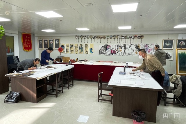 市民在美术馆内进行书画创作(央广网发 庆阳市委宣传部 供图)