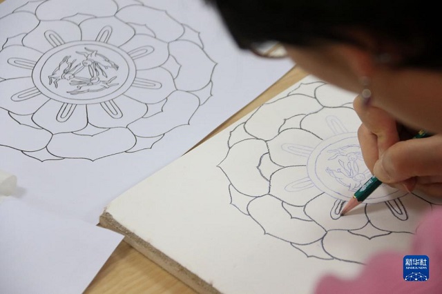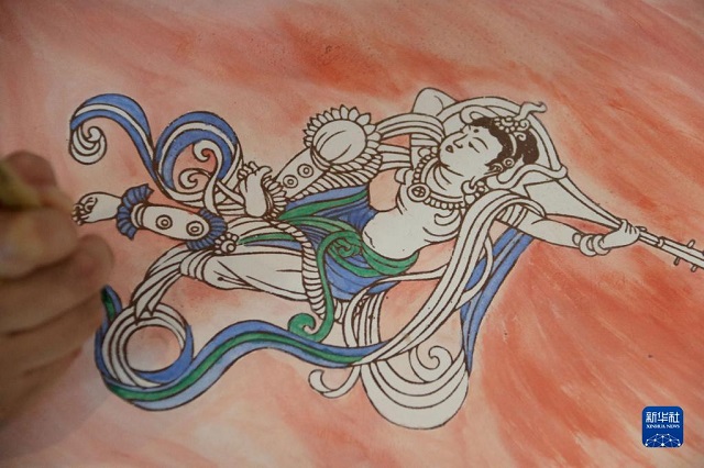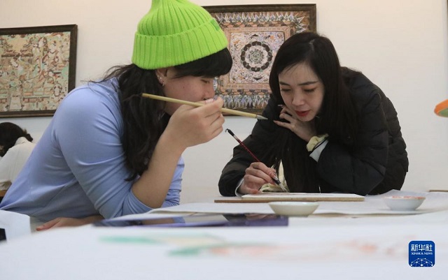 2月23日,学员在敦煌研究院莫高学堂学习临摹敦煌壁画。新华社发(张晓亮摄)