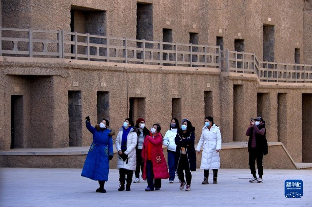 2月23日,参加莫高学堂敦煌文化研学的学员在莫高窟参观。新华社发(张晓亮摄)