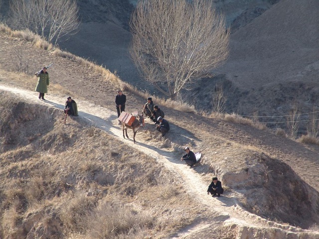 环县道情皮影戏班曾经赶着驴四处唱戏的场景。(环县融媒体中心供图)