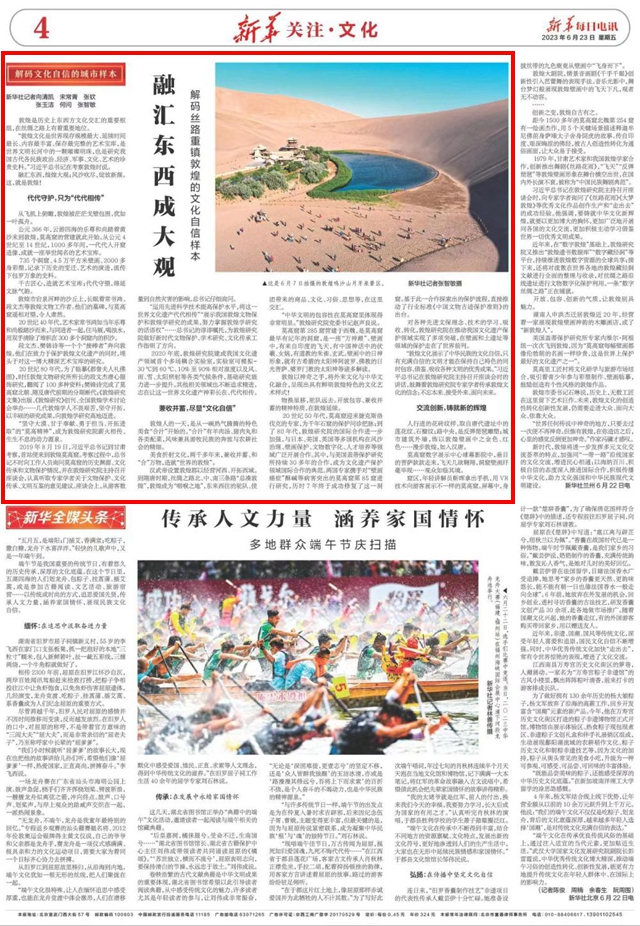 新时代,敦煌将进一步发挥多元文化交流荟萃的特点,加强同“一带一路”沿线国家的文化交流,增进民心相通;以海纳百川、积极自信的态度深入推进国际合作,积极传播中华文化,助力文化强国和中华民族现代文明建设。(文/新华社记者 向清凯 宋常青 张钦 张玉洁 何问 张智敏)