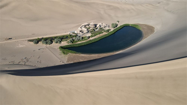这是6月7日拍摄的鸣沙山月牙泉景区(无人机照片)。新华社记者张智敏 摄