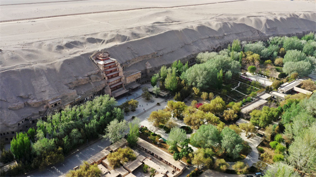 这是4月25日拍摄的莫高窟窟区(无人机照片)。新华社记者陈斌 摄