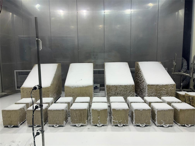 在国内首个文物保护领域多场耦合实验室,4块覆盖着厚厚冰雪的土方吸引了记者们的注意。雨雪风霜是实验室的模拟对象,从莫高窟等地取来的土石将经受各种气象条件,以揭示石窟寺风化的奥秘。