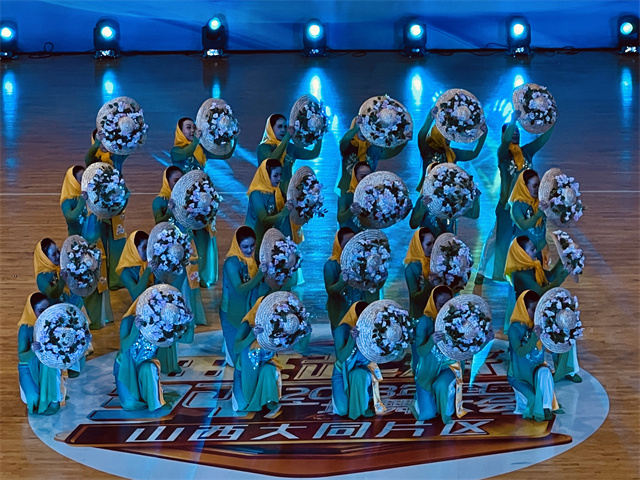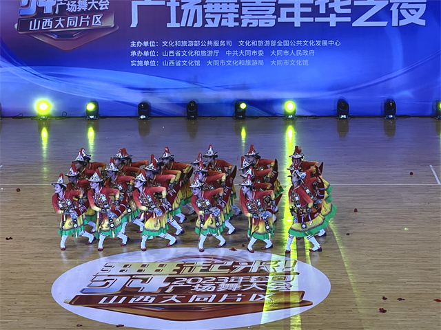 在片区广场舞大会上,来自陕、甘、宁、晋、蒙五省的16支队伍带着新创作的精品佳作在历史文化名城大同,荟萃一堂,一展风采。各参加展演的作品民族特色突出,内容积极向上,时代性明显,创新性示范性推广性强,充分反映了全国各族人民群众对美好生活的新期待。甘肃省文化和旅游厅通过举办“大地欢歌”全省乡村文化活动年——甘肃电信天翼高清杯广场舞大赛,选拔出了酒泉市肃州区文化馆创排的《西域羯鼓》,定西市文化馆创排的广场舞《马铃薯花开幸福来》和甘肃省文化馆、张掖市文化馆创排的《牛角鼓》代表甘肃省参加片区广场舞大会,三支队伍以精彩的展演赢得了现场观众热烈的掌声。