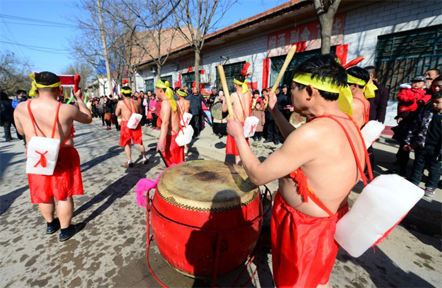 在山西省永济市长旺村,村民在表演永济背冰(资料照片)。新华社发(李向东摄)