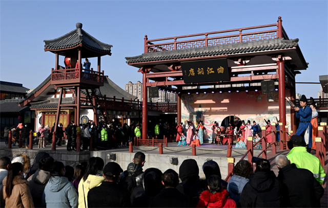 这是西安大唐芙蓉园内的西安鼓乐演出(2023年1月24日摄)。新华社记者 刘潇 摄