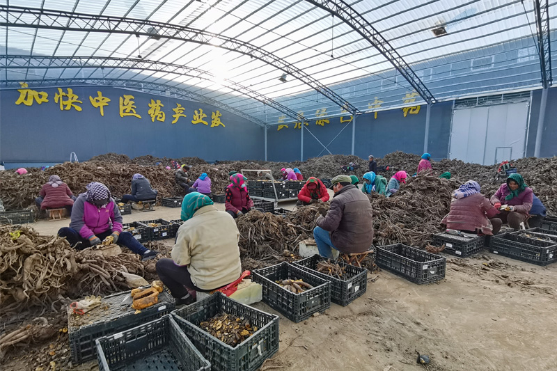 “今年,我公司共完成育苗1000亩,在韩店、通化、郑河等6乡镇集中连片种植5000亩。现在正在对大黄进行分拣、切片、晾晒,一天用工量在300多人次,人工开资在3万元左右,对大黄进行分拣、晾晒、切片后销售,除去人工工资以外每吨可增收入2000多元。”甘肃百富草有限公司负责人苏富喜说。