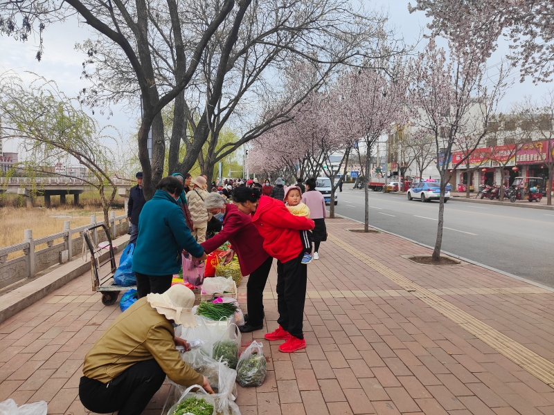在庄浪县临时设置的山野菜交易市场,商贩已经挤得满满当当,吆喝声、讨价还价声此起彼伏、相互交织。苜蓿、蒲公英、香椿、小白葱等伴随着浓浓的春意纷纷走上街头,凭着清新可人的色泽,鲜嫩清爽的口感,让急着享受美食、拥抱健康的市民驻足购买。