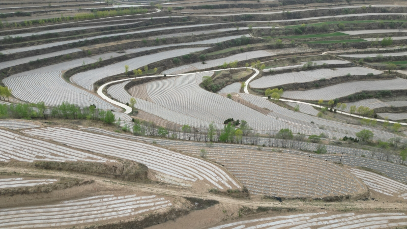 正值春耕农忙时节,在庄浪县赵墩乡井沟村的高标准农田里,大型旋耕机和覆膜机正来回穿梭,对土地进行深耕,群众手握铁锹和机械配合,一幅和谐的春耕生产图呈现在眼前。