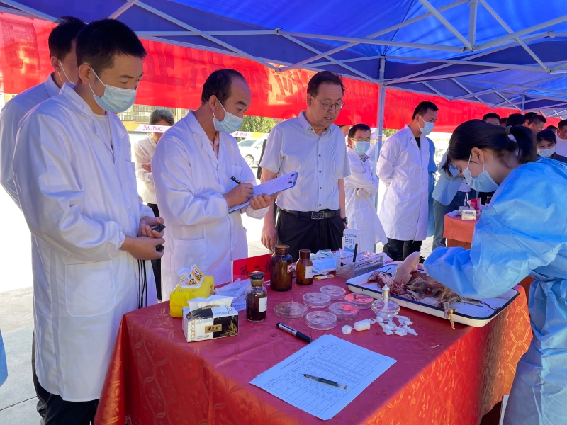 大赛设置理论考试与实践操作,实践操作主要包括鸡翅静脉采血、鸡心脏采血、鸡体解剖与采样、猪前腔静脉采血、牛细管冻精解冻与质量鉴定、母牛发情鉴定、母牛人工输精、牛病检测、动物检疫检验等9项内容。比赛现场,各参赛选手精神饱满、斗志昂扬,精湛娴熟的操作技能引得围观人员一致好评。