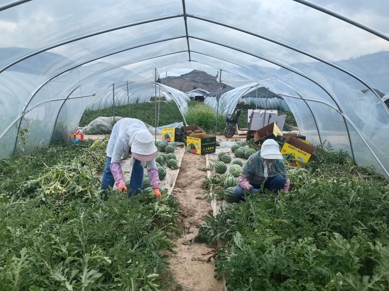 这几天,当地西瓜陆续成熟,工人们忙碌着采摘运送西瓜,入箱、装车,现场一片丰收的繁忙景象。